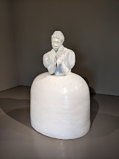 This was made with the same materials as plates you eat off of. I wonder if the artist wanted to show the fragility of hair or culture. I dunno.